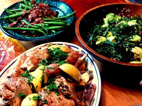 *meyer lemon slices are entirely edible & delicious with the chicken – peel & all.