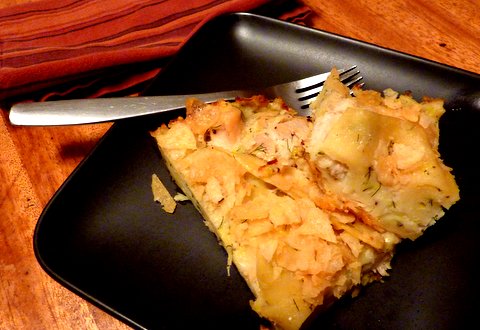 Tuna casserole will never be a favorite of mine, but I have to admit that this version is really good in spite of the canned ingredient and….hard to believe, potato chips???