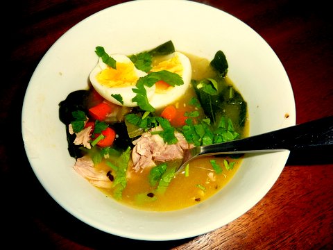 “je bent een soep mens.” oma used to say this to me when she told me we were having one of my favorite meals of fresh, crusty baguette, creamy & stinky cheeses & a delicious from-scratch soup. it means “you are a soup person” & she was right. soup possibilities are endless – from an elegant consomme to a salty beer & cheese & for many food-loving people a great soup is the ultimate test of kitchen prowess, yet soup is also accessible & familiar. lately i have been making a lot of soup with the intention of stocking the freezer but somehow it disappears before there are leftovers. to my chicken soup i add a 6-minute boiled egg to each bowl before serving because i heart eggs & because the silky yolk thickens the broth. to make a heartier soup you could add cubes of potato or a handful of rice. this is such a flexible recipe – you can get creative & make it your own by omitting the greens & adding other vegetables, skip the egg, add sausage…