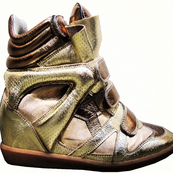 a hidden wedge gives lift. bronze wedge sneaker / isabel marant